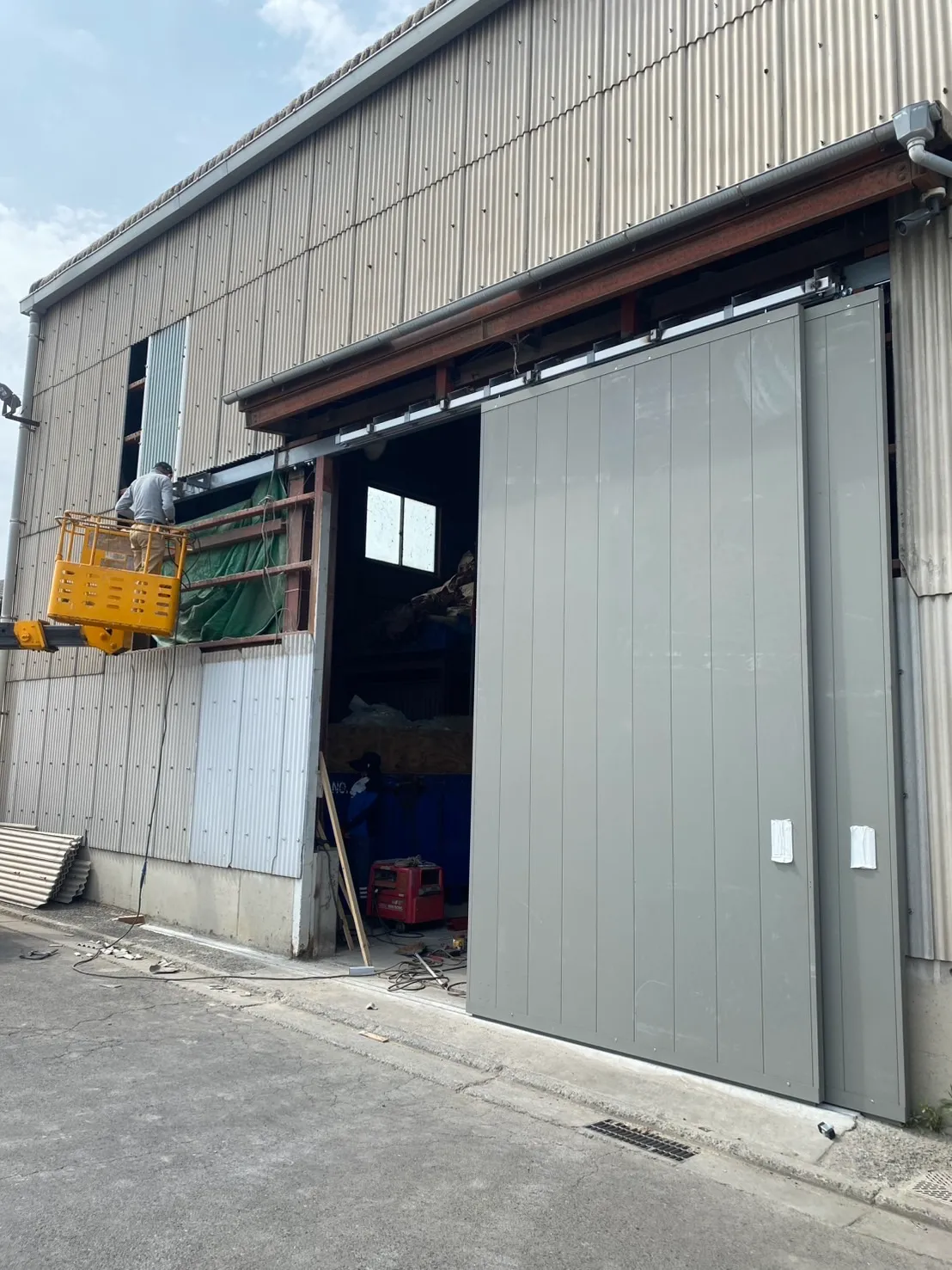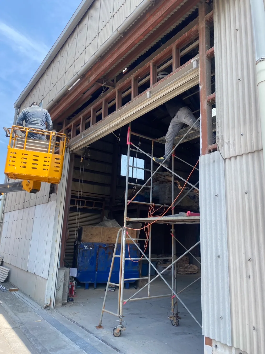 工場の入口開口部を高くするため、お客様との打合せを重ね、設計から製作、取替工事まで、施工致しました。 工場が稼働中の為、特に安全面に気をつけました。