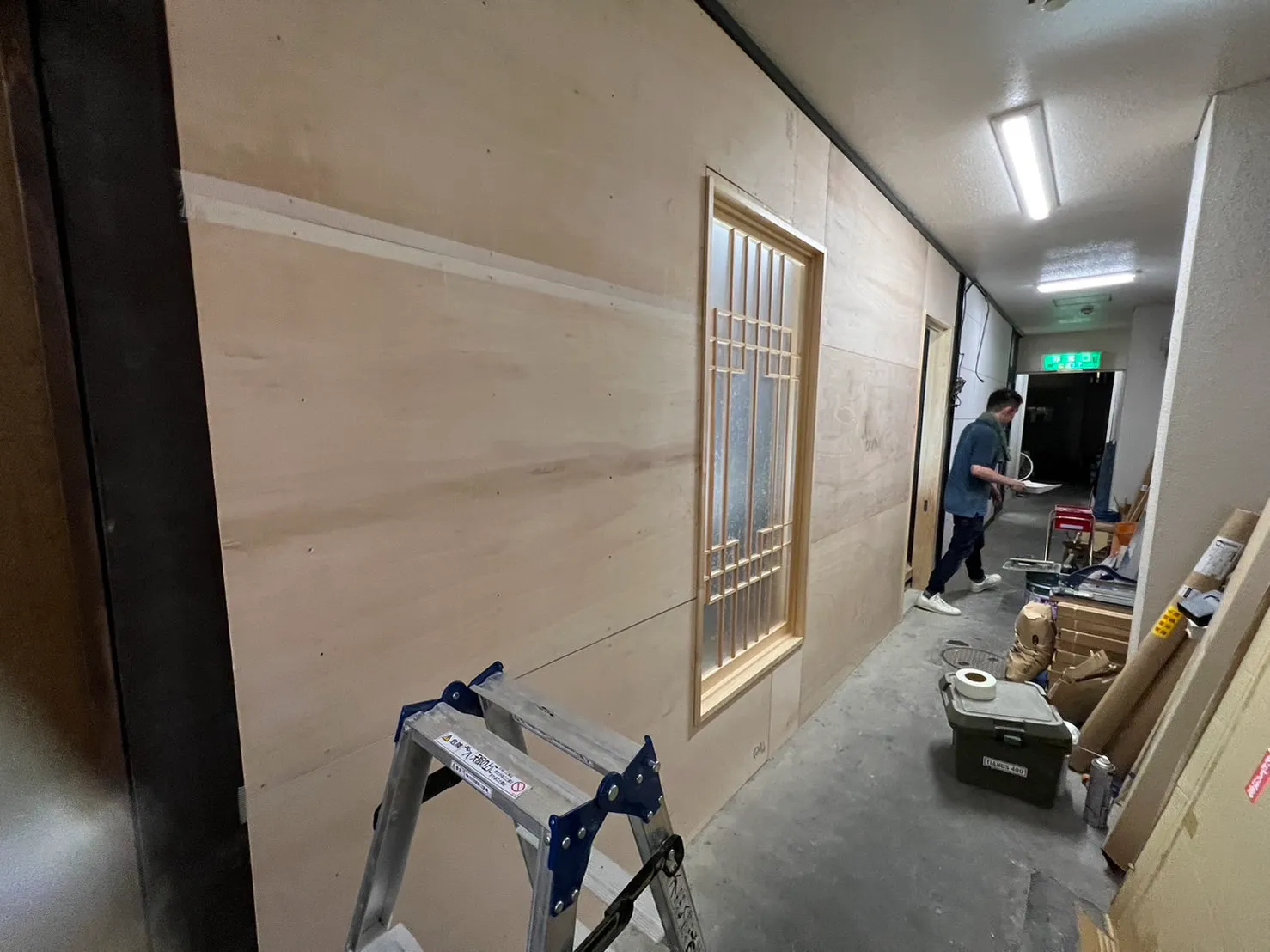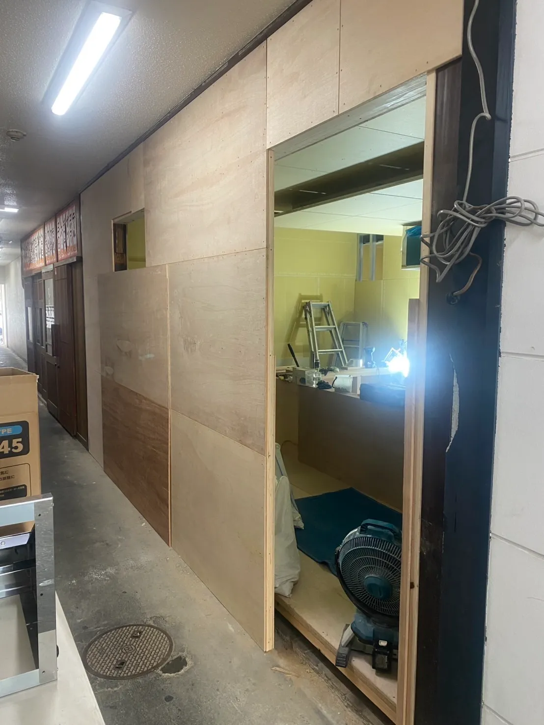 福岡市の中心部のテナント工事で、人通りが多く、養生、車輌や資材搬入に、気をつけました。