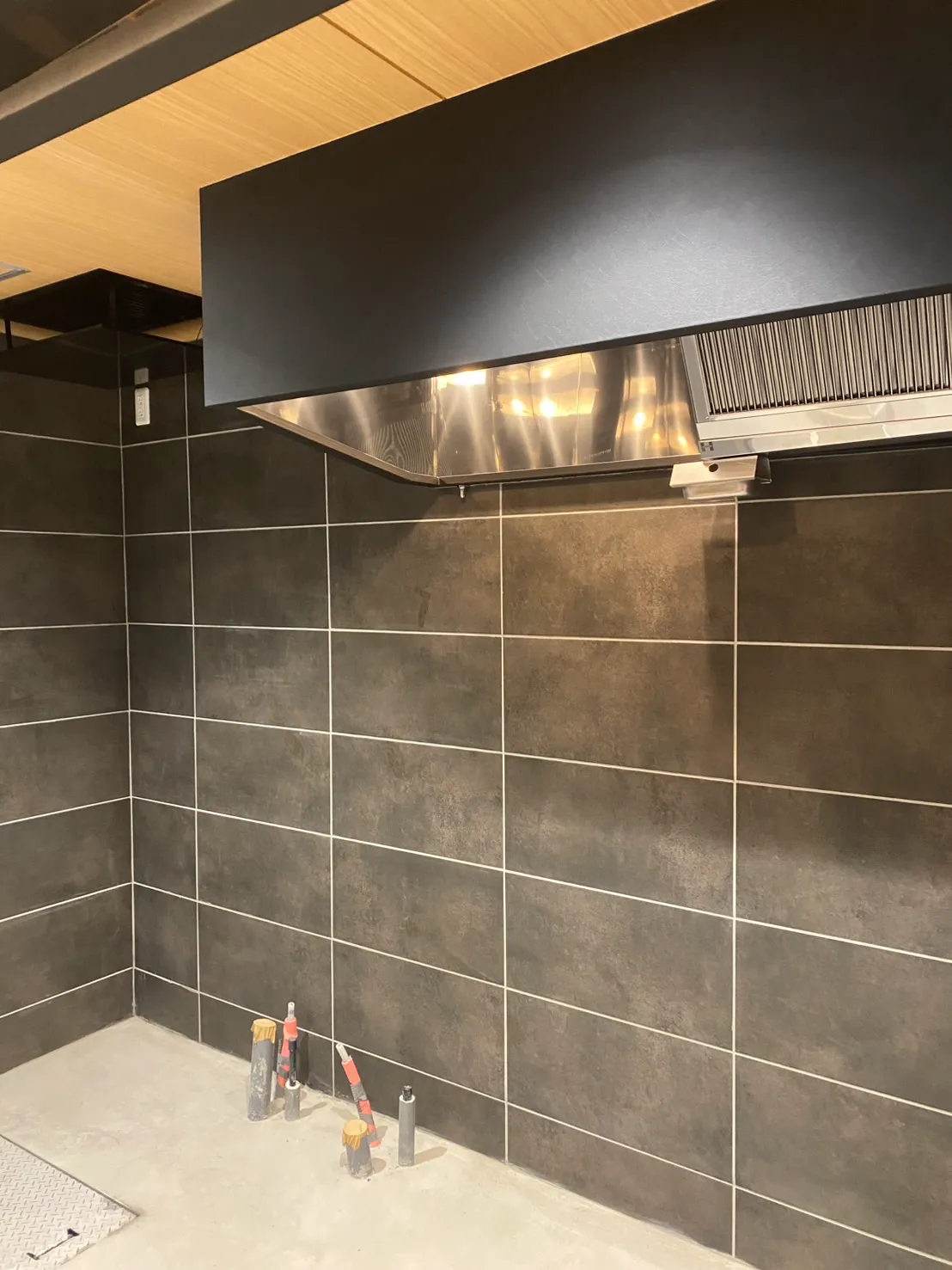 施主様と3Dパースなどで、入念に打合せし、炭火を使うので、煙が充満しないように換気フードなど、風圧計算などに気をつけて、施工致しました。